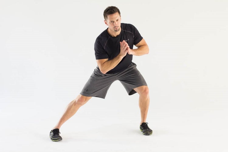 - Keep your feet parallel and lunge to the left.
