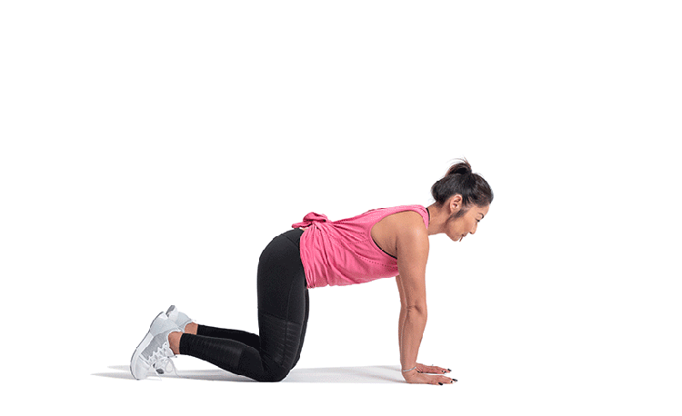 - Begin in a tabletop position with your knees under your hips and your hands under your shoulders.