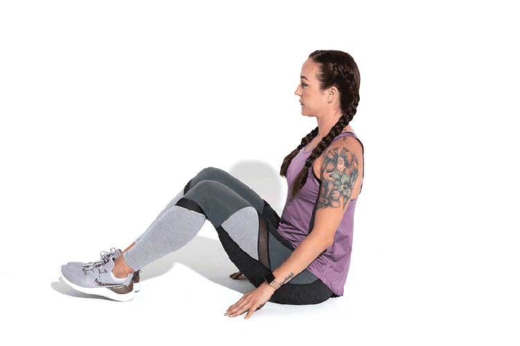 - Sit on your tailbone and elevate your feet off the ground. Straighten your legs.